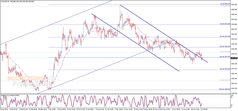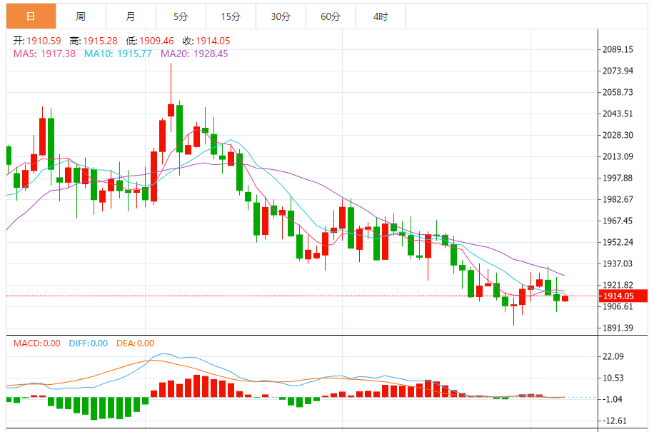 基本消息面 周五(7月7日),现货黄金日内略微反弹,金价目前交投在1912美元/盎司附近。根据cooi.co,金价确认跌破关键水平1913.15美元/盎司,这为金价进一步回调打开空间。 相关新闻消息 金价周四盘中最高触及1927.66美元/盎司,但受强劲美国经济数据影响,金价自上述高点大幅下挫,最低触及1