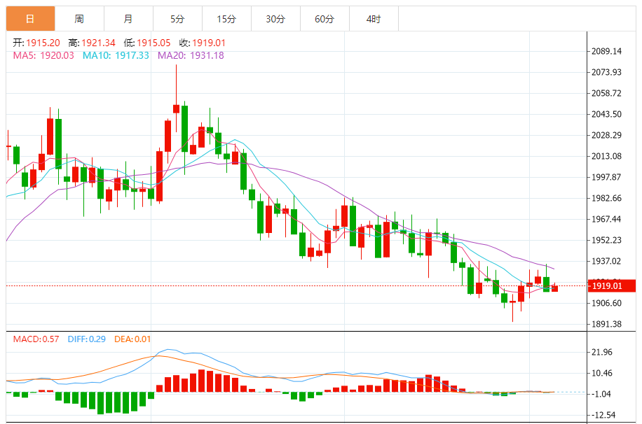 基本消息面 周四(7月6日),国际金价反弹,回补部分隔夜跌势。尽管美联储6月会议纪要暗示,利率可能在更长时间内保持较高水平,但投资者等待新的可能影响美联储政策轨迹的经济数据。 截至发稿,现货黄金上涨0.26%至1920.03美元/盎司;COX期金主力合约下跌0.04%至1926.4美元/盎司;美元指数下跌0.12%至10