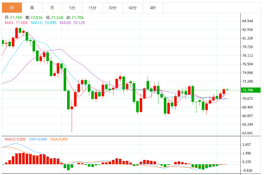 基本消息面 周四(7月6日),美原油窄幅震荡,目前交投于71.66美元/桶附近,虽然对国际贸易局势的担忧,令多头有所顾忌,但沙特方面周三喊话称OC+将采劝一切必要措施”支持市场,而且凌晨数据显示AI原油库存大幅下降,仍给油价提供支撑。技术面来看,短线略微偏向多头,有望进一步试探布林线上轨72.80附近阻