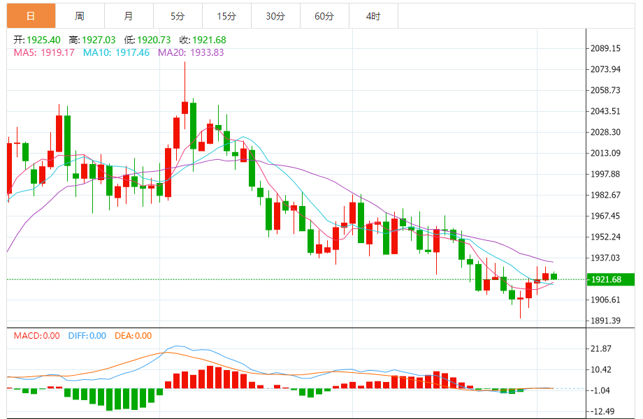 基本消息面 周三(7月5日),现货黄金短线突然一波急跌,金价正逼近1920美元/盎司关口。 相关新闻消息 金价周二小幅上升,但长期走势仍显示缺乏买家。 现货黄金周二收报1925.65美元/盎司,上升4.40美元或0.23%,盘中最高触及1930.75美元/盎司。 目前黄金交易员等待美联储会议纪要,预计