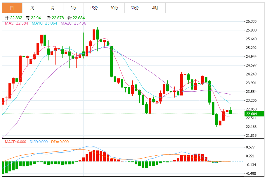 基本消息面 周三(6月28日)欧市早盘,现货白银短线突然急跌,银价目前跌至22.75美元/盎司附近,亚市尾盘银价一度接近23.00美元/盎司关口。 相关新闻消息 银价在23.00美元/盎司水平下方整固,目前呈现新的下跌走势。目前等待银价进一步下滑,并跌向下一看空目标22.25美元/盎司。 因此,