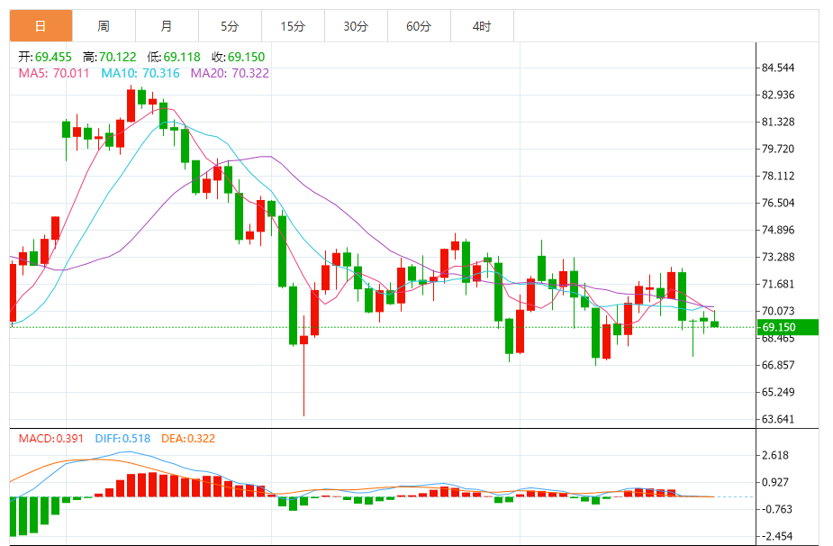 基本消息面 北京时间28日凌晨,美国WTI原油期货周二收跌2.4%。有迹象表明欧洲央行尚未完成加息,而投资者正在等待可能揭示美国夏季驾驶旺季燃料消耗量的数据。 纽约商品交易所8月交割的西德州中质原油(WTI)期货价格下跌1.67美元,跌幅为2.41%,收于每桶67.70美元。7月天然气期货收跌1.00%,报2.7630美