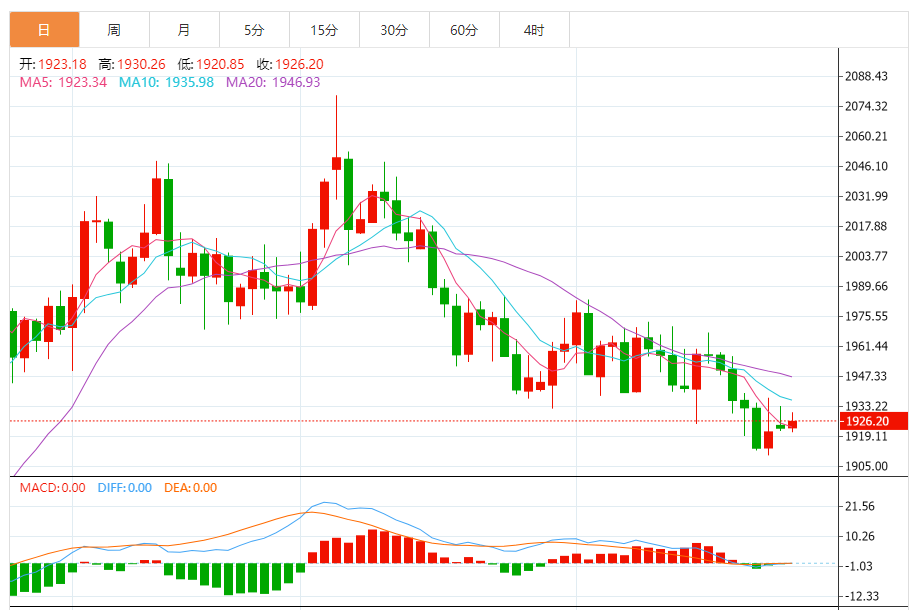 基本消息面 周二(6月27日),国际金价依然徘徊在上周创下的3月16日以来低点1910.01美元/盎司上方附近,投资者等待美联储主席鲍威尔讲话以及即将公布的美国5月个人消费支出数据,以便评估加息效果。 截至发稿,现货黄金上涨0.30%至1928.69美元/盎司;COX期金主力合约上涨0.25%至1938.7美元/盎司;美元指