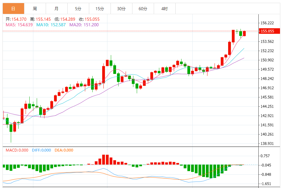周三,欧元/日元上涨0.43%至155.087附近。 欧元方面,日前,欧洲央行在6月货币政策会议上加息25个基点,符合市场预期。相比于美联储在暂停加息的同时又放出“鹰”派信号,欧洲央行的决策者们则始终如一地向市场传递一个信号——欧洲央行将继续加息以抗击通胀。从目前的情况看,欧洲央行已经将加息步伐放缓至25