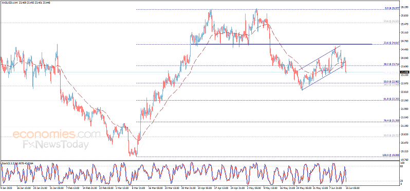 基本消息面 周四(6月15日),现货白银维持日内跌势,银价目前位于23.50美元/盎司附近,日内重挫1.7%。 分析师指出,受美联储鹰派信号刺激,美元走强,这令银价承压。美元指数目前交投在103.30左右。 相关新闻消息 美联储周三维持联邦基金利率目标区间在5%-5.25%不变,但点阵图显示,2023年年