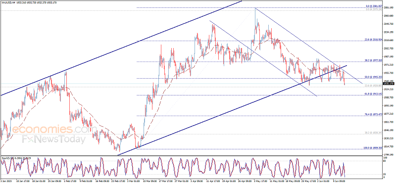 基本消息面 周四(6月15日),现货黄金维持日内跌势,金价现报1936美元/盎司附近。 根据cooi.co,随着金价确认跌破重要水平1945.20美元/盎司,这为金价进一步大跌铺平道路。 相关新闻消息 美联储周三维持联邦基金利率目标区间在5%-5.25%不变,符合此前预期。但美联储暗示年内将进一步加