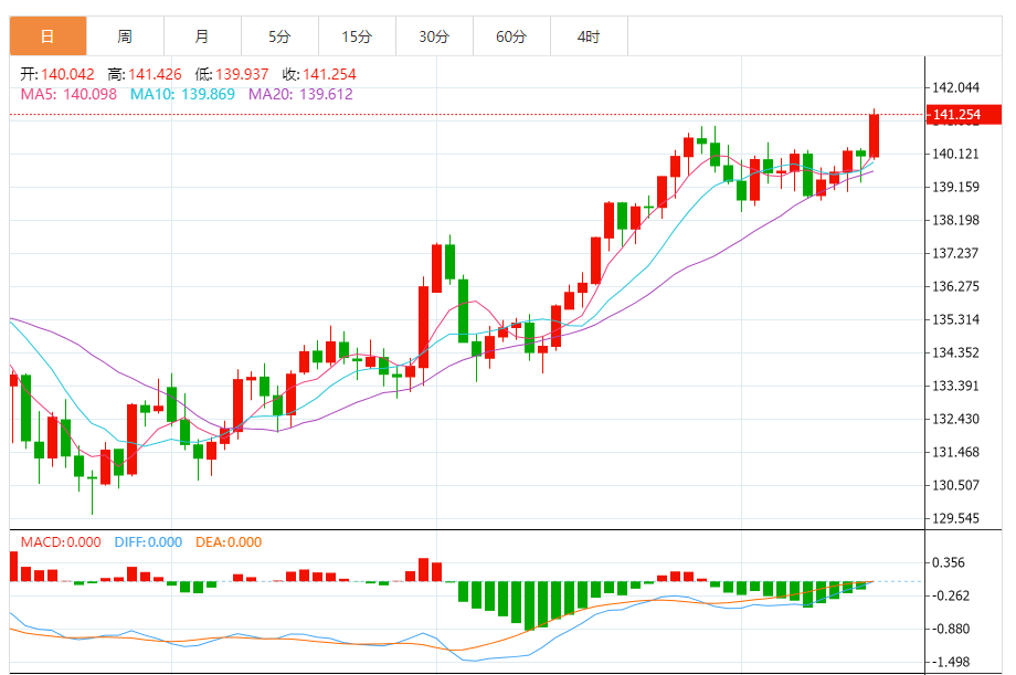 周四(6月15日),美元/日元上涨,暂报141.270,涨幅0.85%。 市场基本面分析 日本财务省15日公布的初步统计结果显示,日本5月贸易逆差为大约1.37万亿日元(1美元约合135日元),同比下降42%。这是日本连续22个月出现贸易逆差。 报告显示,原油、煤炭、液化天然气进口额同比分别下降21.7%、32.1%、3