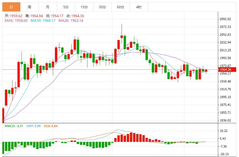 基本消息面 周一(6月12日),现货黄金窄幅震荡,目前交投于1960美元/盎司附近,市场普遍等待本周出炉的美国5月份CI数据和美联储利率决议,投资者观望情绪较浓,交投相对清淡,美国5月CI可能录近一年半最低增速,美联储大概率会暂停加息,俄乌局势有所紧张化,给金价提供支撑,但市场担忧美联储仍可能维持鹰