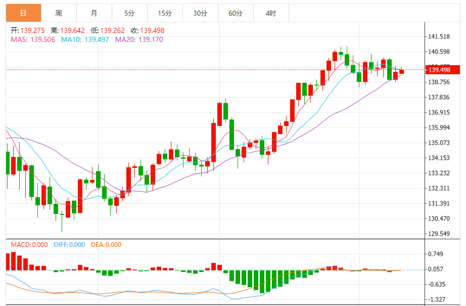 周一(6月12日),美元/日元上涨,暂报139.502,涨幅0.09%。 市场基本面分析 日本总务省近日公布数据显示,4月份日本去除生鲜食品后的核心消费价格指数为104.8,同比上升3.4%。该指数已连续20个月上升,并连续13个月超过日本央行2%的目标。与此同时,日本央行表示,继续维持现行超宽松货币政策,并将用一