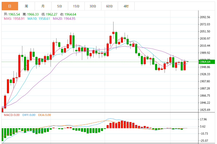 基本消息面 周五(6月9日),国际金价基本持稳。隔夜金价大涨逾1%,使得周线有望收涨,因美联储暂停加息预期导致美元指数暴跌。但考虑到短期势头耗尽,以及三重看跌势头背离仍然有效,金价短期内最有可能的走势仍是进一步区间波动。 截至发稿,现货黄金下跌0.06%至1964.24美元/盎司;COX期金主力合约上浮