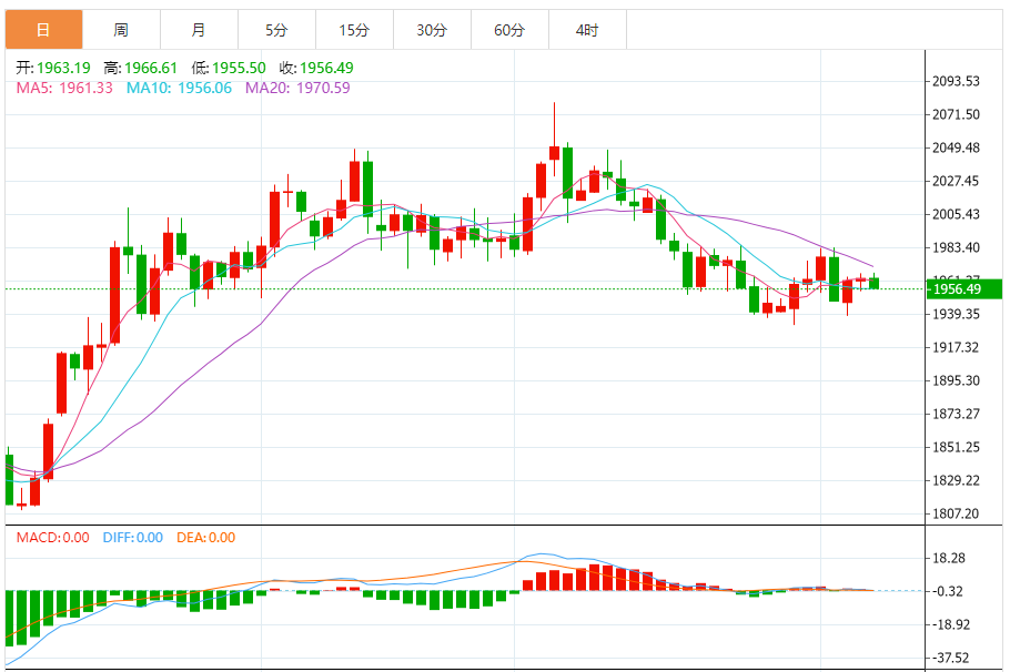 基本消息面 受累于美国国债收益率上扬,金价周三(6月7日)下跌。眼下,投资者正静待通胀数据和美联储下周的政策会议,以进一步明确利率路径。 美市尾盘,现货黄金收报1939.72美元/盎司,下跌23.66美元或1.21%,盘中最高触及1970.19美元,最低触及1939.71美元。 COX6月黄金期货收跌超1.16%,报1958