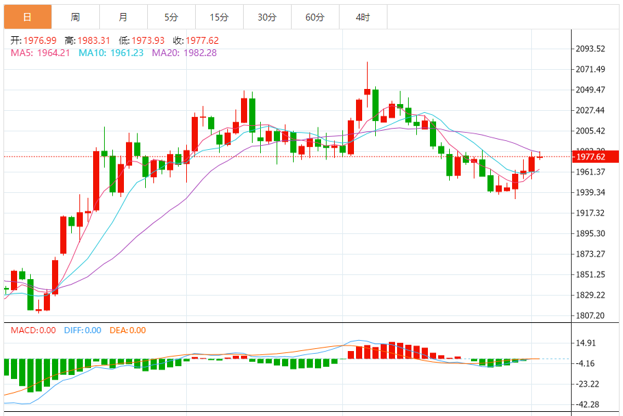 基本消息面 周五(6月2日),现货黄金维持日内升势,金价现报1980美元/盎司附近。根据cooi.co,金价已经确认突破关键阻力1977.25美元/盎司,这为金价后市进一步大涨打开空间。 相关新闻消息 现货黄金周四收报1977.52美元/盎司,上升15.10美元或0.77%,日内最高触及1983.15美元/盎司。 金