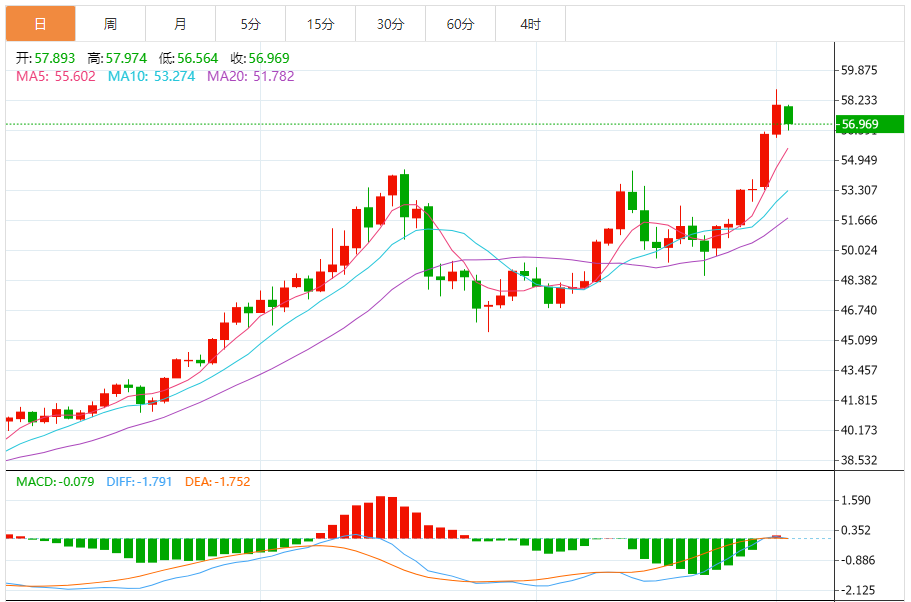 周二(12月2日),现货白银目前位于56.965美元/盎司附近,跌幅为1.74%。 白银价格在最后一个盘中交易中下跌,积聚了可能有助于其恢复和再次上涨的看涨势头,试图在相对强度指标上卸载一些超买条件,特别是随着负面信号的出现,主要看涨趋势在短期内占主导地位,其交易沿着主要和次要趋势线进行,这些趋