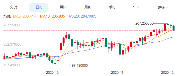 周一,英镑/日元下跌0.51%至205.68附近。 英镑方面,英国央行的货币政策动向成为主导英镑近期走势的核心因素。在11月的议息会议上,英国央行打破自2024年8月以来的季度性降息节奏,以5:4的投票结果维持4.00%的基准利率不变,与美国并列成为七国集团中利率最高的经济体。尽管暂停降息,但政策指引的微妙