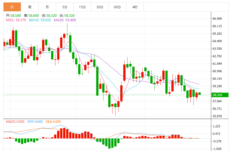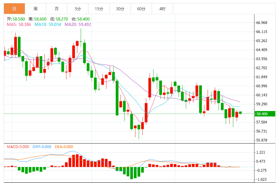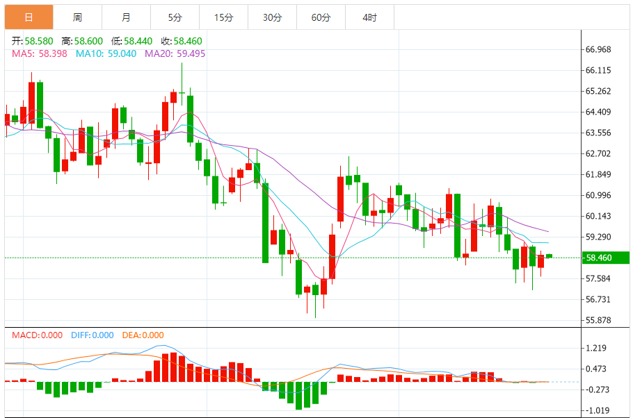 基本消息面 周四,国际原油市场情绪持续低迷,西德克萨斯中质原油(WTI)基本持平于58美元/桶关口,处于近一个月以来的低位区间。投资者对最新公布的美国能源信息署(IA)库存数据反应冷淡,反映出在多重利空因素交织下,市场观望情绪浓厚。 相关新闻消息 IA数据显示,截至