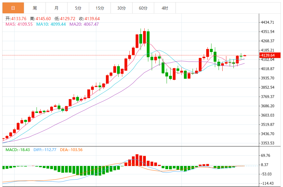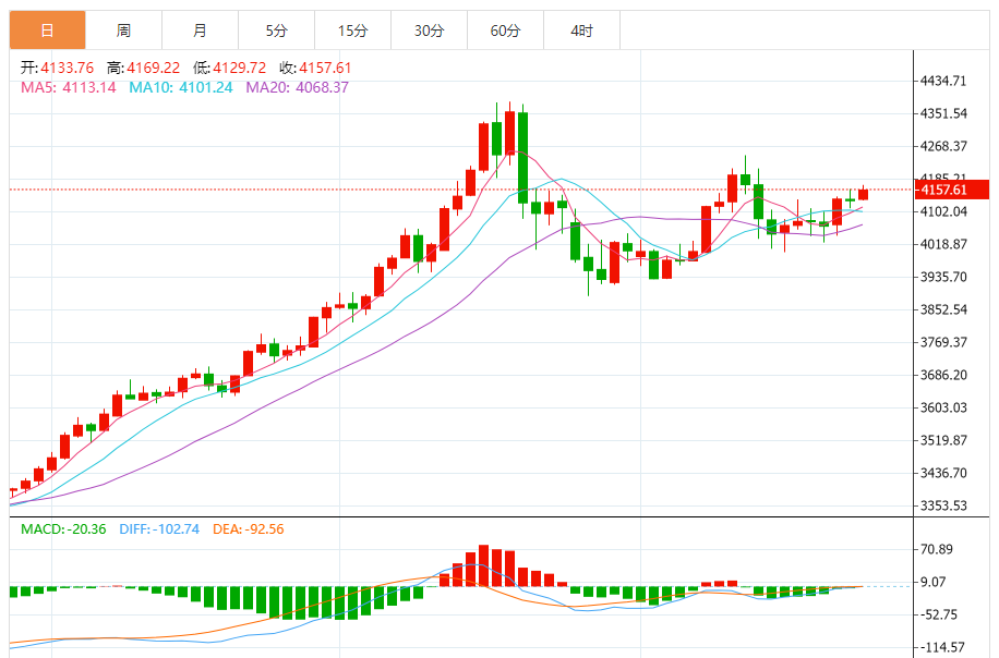 周三(11月26日),现货黄金目前位于4157.64美元/盎司附近,涨幅为0.65%。 黄金在最后一个盘中交易中上涨,在卸载其超买条件后,受到相对强度指标上积极重叠信号的支持,为近期继续上涨开辟了道路,同时继续得到来自A50上方交易的积极支持,加强了当前趋势的强度。 黄金继续在短期基础上