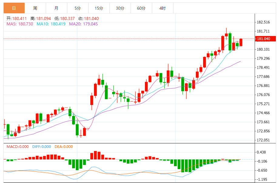 周三,欧元/日元上涨0.36%至181.071附近。 欧元方面,在货币政策维持稳定的背景下,欧元区经济呈现"弱复苏"特征。欧央行在会议声明中指出,尽管面临全球贸易摩擦和地缘政治紧张的挑战,但欧元区经济仍在继续增长。不过,11月公布的欧元区I初值释放了混合信号,制造业I仍处于44.8的收缩区间,连续12