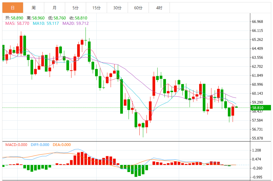 基本消息面 周二(11月25日),美原油价格交投于58.800美元/桶附近,跌幅为0.05%。 相关新闻消息 从实时驱动因素来看,供应端的利好信号与利空预期形成直接博弈。利好方面,美国能源信息署(IA)最新数据显示,截至11月14日当周,美国商业原油库存量意外下降342.6万桶,较市