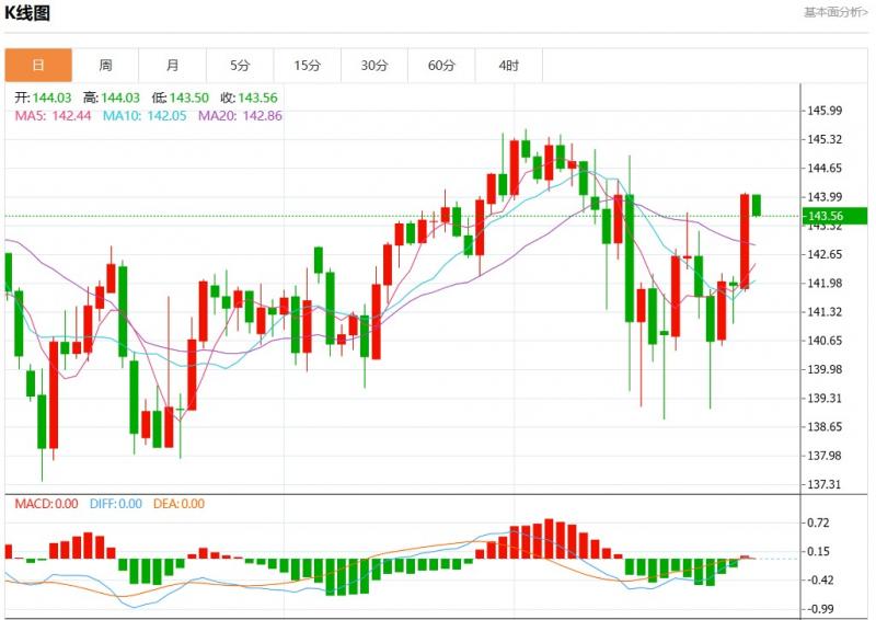 周四盘中,欧元日元报143.57,跌幅0.37%。 今日分析:看涨,当143.12为支撑位,目标定在144.87。 备选策略:如跌破143.12,UR/JY目标方向定在142.47和142.08。 技术点评:RI技术指标超过50。ACD技术指标处在其信号线之下看多。另外,价位低于其20天移动平均线(143.81)但