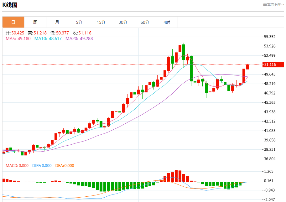 周二盘中,现货白银报51.113,涨幅1.25%。 今日分析:在50.20之上,看涨,目标价位为51.60,然后为52.40。 技术点评:其即时趋势维持向上,有较强的动能。 支撑位:50.2049.6049.20 阻力位:53.2052.4051.60 (亚汇网编辑:冰凡)