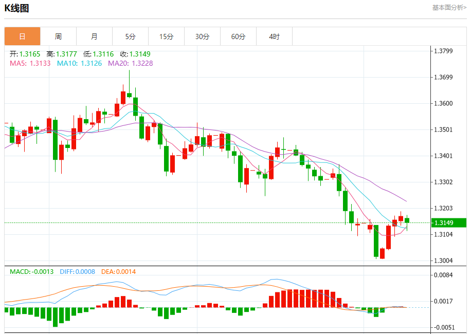 周二盘中,英镑/美元报1.3151,跌幅0.16%。 今日分析:在1.3155之下,看跌,目标价位为1.3110,然后为1.3090。 技术点评:即使我们不能排除持续技术反弹的可能性,其时间长度上,应该是有限的。 支撑位:1.31101.30901.3070 阻力位:1.31901.31751.3155
