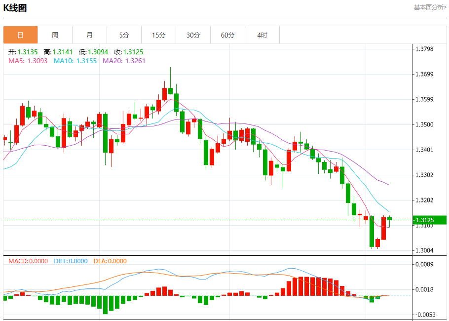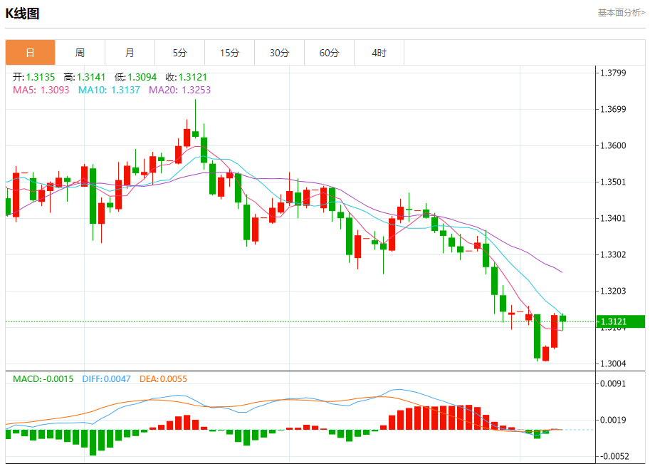 周五盘中,英镑/美元报1.3115,跌幅0.16%。 今日分析:在1.3075之上,看涨,目标价位为1.3165,然后为1.3195。 技术点评:随后的阻力位是1.3165,然后为1.3195。 支撑位:1.30751.30451.3015 阻力位:1.32201.31951.3165 (亚汇网编辑:冰凡)