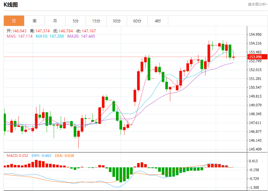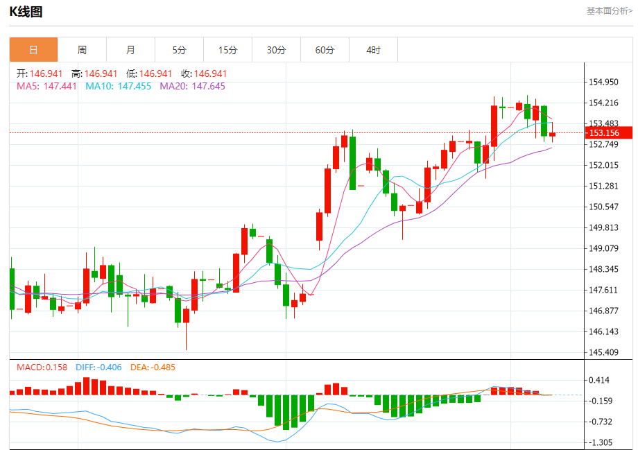 今日周五,欧元兑美元报1.1556,涨幅0.08%;英镑兑美元报1.3126,跌幅0.08%;美元兑日元报153.182,涨幅0.07%。 欧元兑美元汇率分析 技术点评:RI技术指标看涨,有进一步向上趋势。 阻力位:1.16251.15951.1575 支撑位:1.15251.15051.1485 英镑