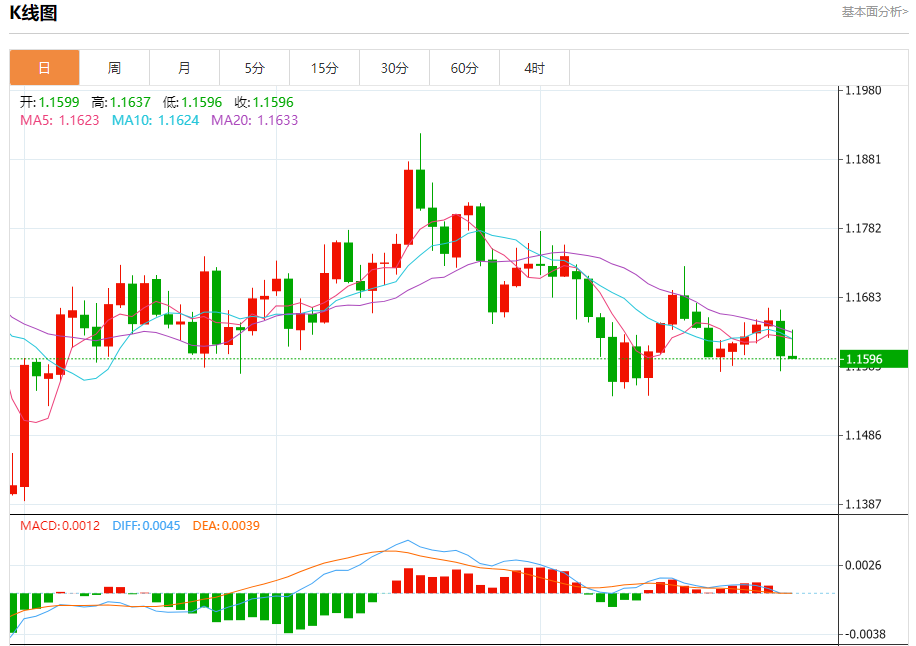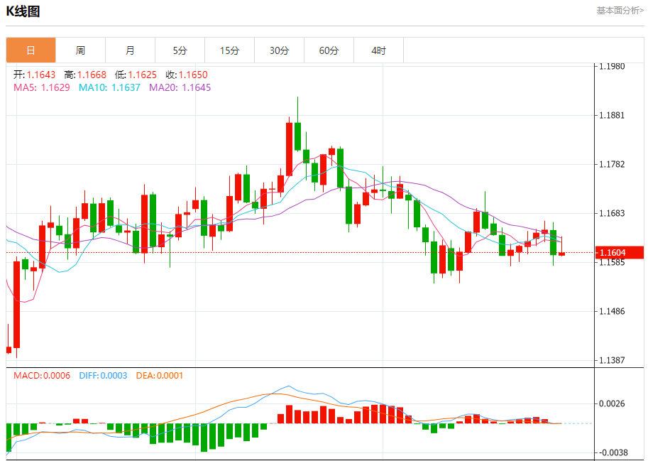 周四晚间,美元指数现报99.329,涨幅0.18%,现对美元兑欧元、英镑、日元主要货币对分析表述如下: 欧元/美元 汇价高见1.1637,低见1.1596。上一交易日,汇价收于1.1601。 基本面:德国复兴信贷银行表示,贸易问题和欧元走强目前还不足以影响欧洲央行本周的货币政策决定。与美