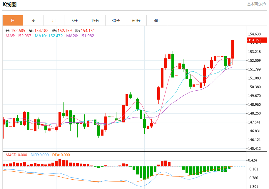 今日周四,截止目前美元兑日元报153.939,上涨0.79%。 日元基本面行情分析 日本央行周四(10月30日)维持基准利率在0.5%不变,连续第六次按兵不动。此次央行会议是高市早苗本月出任日本首相后举行的首次央行会议。 该行此次决策以7票赞成、2票反对的结果通过,反对票来自两位