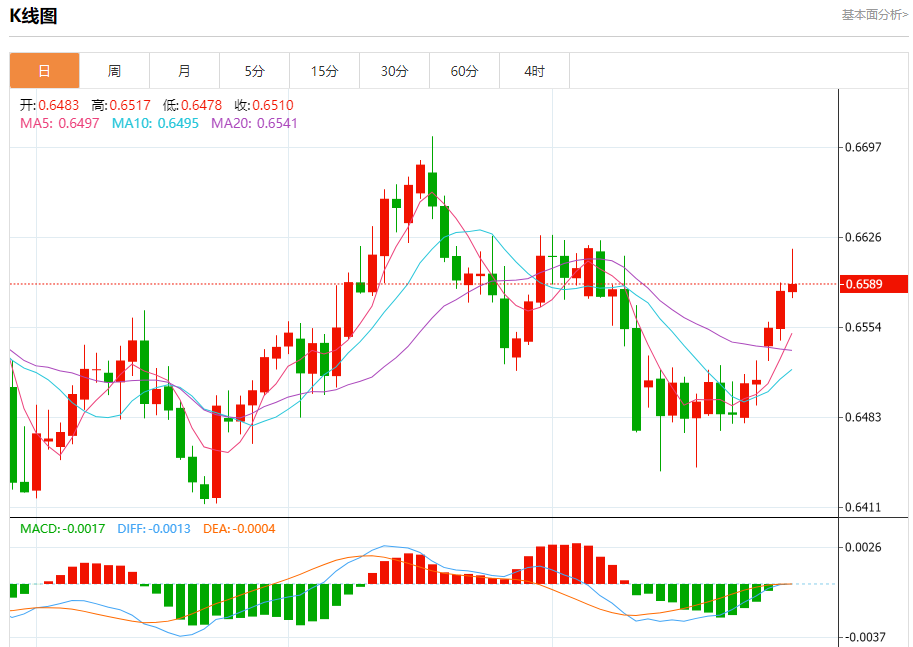 今日周三,澳元兑美元报0.6592,涨幅0.11%;美元兑加元报1.3937,跌幅0.07%;美元兑瑞郎报0.7975,涨幅0.56%。 澳元兑美元汇率分析 技术点评:RI技术指标刚达到50%中性区域,向上反转。 阻力位:0.66600.66350.6615 支撑位:0.65750.65600.6545