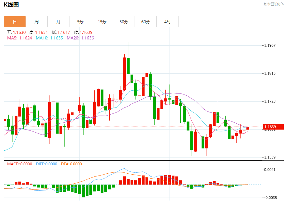周一盘中,欧元/美元报1.1631,涨幅0.10%。 今日分析:在1.1610之上,看涨,目标价位为1.1650,然后为1.1665。 技术点评:RI技术指标看涨,有进一步向上趋势。 支撑位:1.16101.15951.1580 阻力位:1.16801.16651.1650 (亚汇网编辑:冰凡)