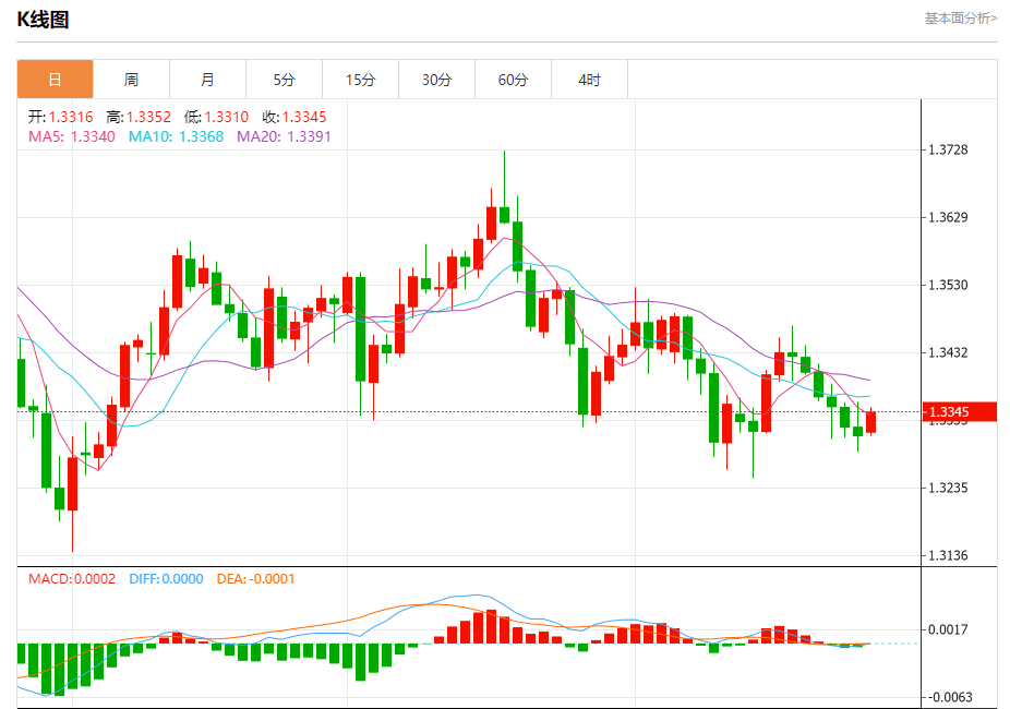 周一盘中,英镑/美元报1.3346,涨幅0.26%。 今日分析:在1.3300之上,看涨,目标价位为1.3370,然后为1.3395。 技术点评:RI技术指标看涨,有进一步上升空间。 支撑位:1.33001.32851.3265 阻力位:1.34101.33951.3370 (亚汇网编辑:冰凡)
