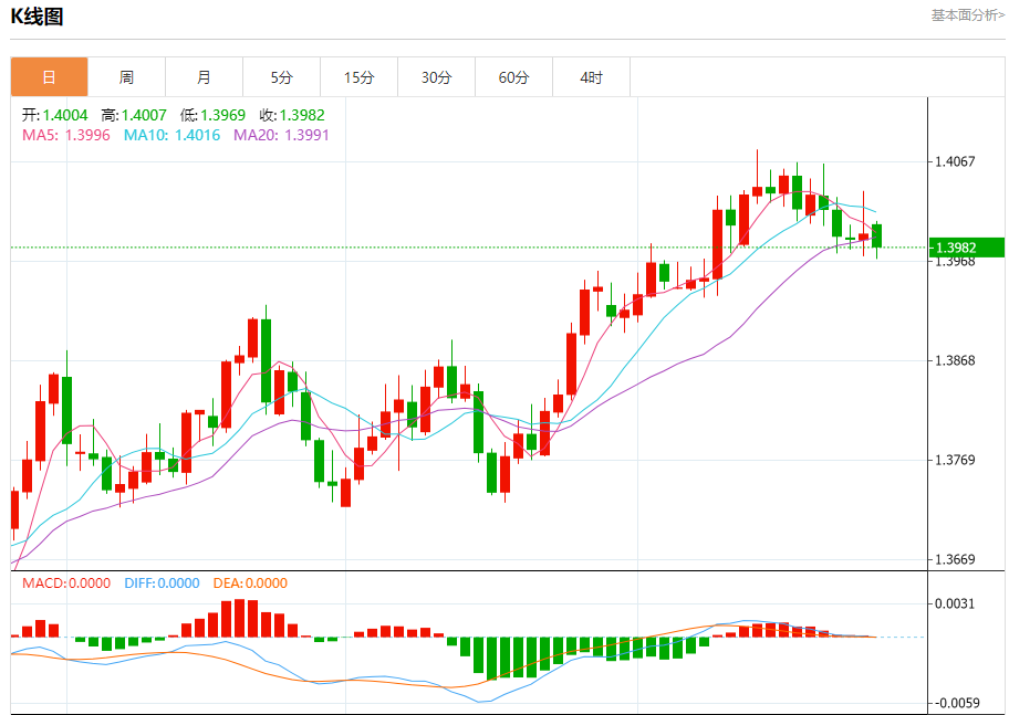 今日周一,澳元兑美元报0.6557,涨幅0.65%;美元兑加元报1.3985,跌幅0.09%;美元兑瑞郎报0.7958,涨幅0.04%。 澳元兑美元汇率分析 技术点评:RI技术指标向上运行。 阻力位:0.66000.65900.6570 支撑位:0.65300.65150.6495 美元兑加元汇率分析