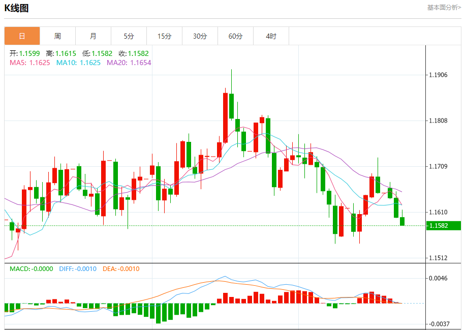 周三晚间,美元指数现报99.033,涨幅0.09%,现对美元兑欧元、英镑、日元主要货币对分析表述如下: 欧元/美元 汇价高见1.1615,低见1.1582。上一交易日,汇价收于1.1599。 日内建议:可以在1.1640---1.1565的区间上限卖出,有效破位40个点止损,目标在区间的下限。