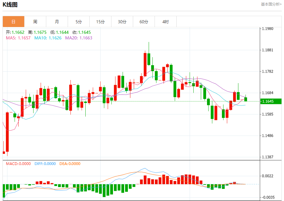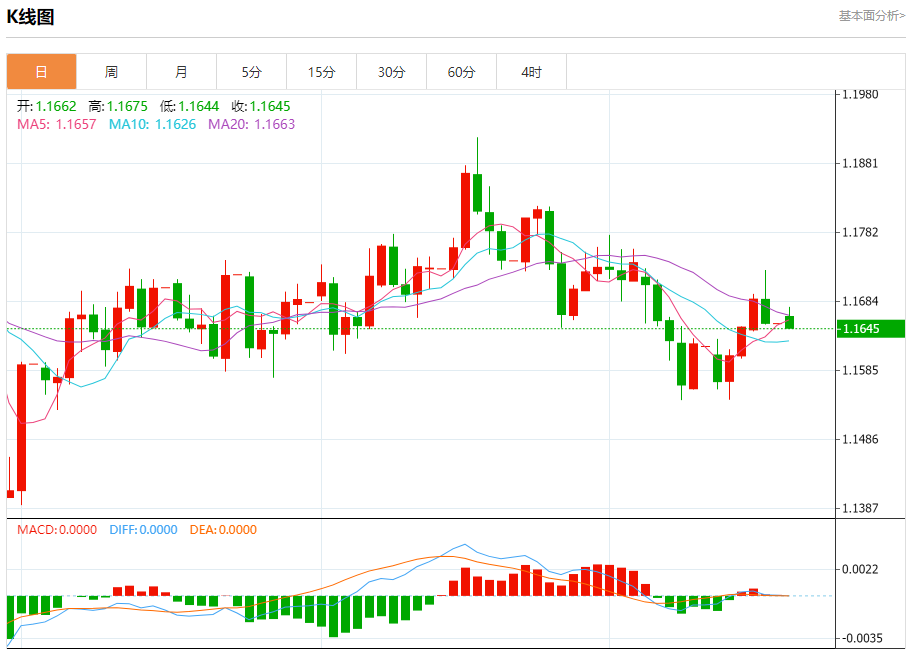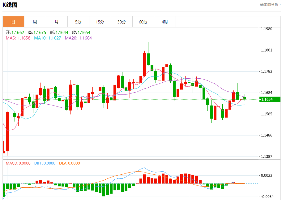 周一晚间,美元指数现报98.573,涨幅0.03%,现对美元兑欧元、英镑、日元主要货币对分析表述如下: 欧元/美元 汇价高见1.1675,低见1.1644。上一交易日,汇价收于1.1654。 日内建议:可以在1.1715---1.1605的区间上限卖出,有效破位40个点止损,目标在区间的下限。