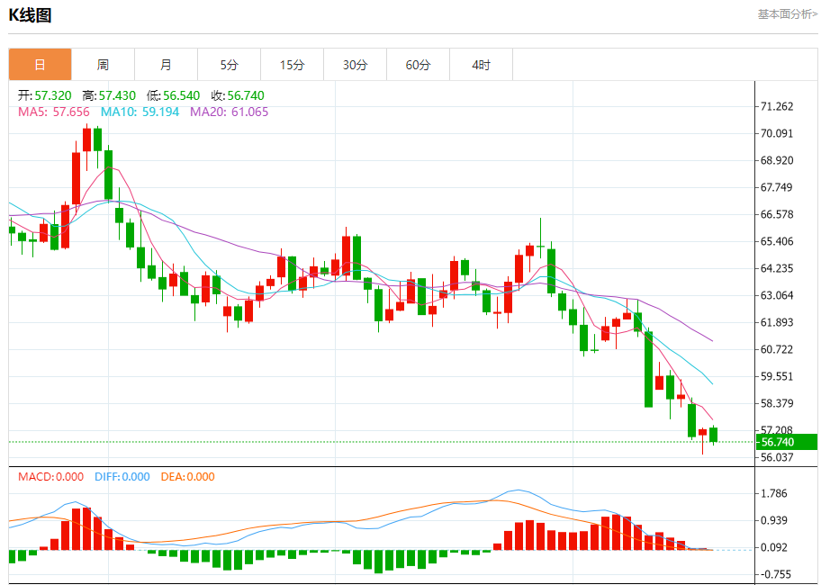 周一盘中,WTI原油报56.800,跌幅0.61%。 今日分析:在57.40之下,看跌,目标价位为56.15,然后为55.55。 技术点评:只要依旧存在57.40阻力位,很可能下跌至56.15。 支撑位:56.1555.5555.00 阻力位:58.2057.8057.40 (亚汇网编辑:冰凡)
