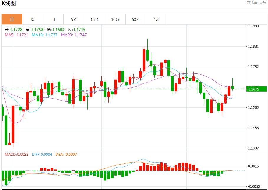 今日周五,截止目前欧元兑美元报1.1688,上涨0.00%。 欧元基本面分析 欧洲央行行长克里斯蒂娜·拉加德表示,欧洲央行的利率处于适当水平,足以应对全球经济接下来可能遭遇的任何动荡。 拉加德称,通胀与经济增长的风险已更加均衡。这表明她对通胀率和利率均在2%这一水平感到