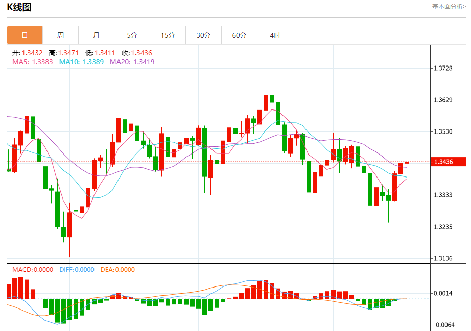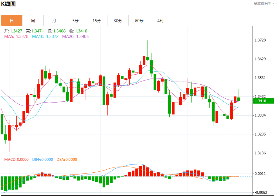 周五盘中,英镑/美元报1.3412,跌幅0.16%。 今日分析:在1.3390之上,看涨,目标价位为1.3465,然后为1.3490。 技术点评:即使我们不能排除持续调整的可能性,其时间长度上,应该是有限的。 支撑位:1.33901.33651.3335 阻力位:1.35201.34901.3465
