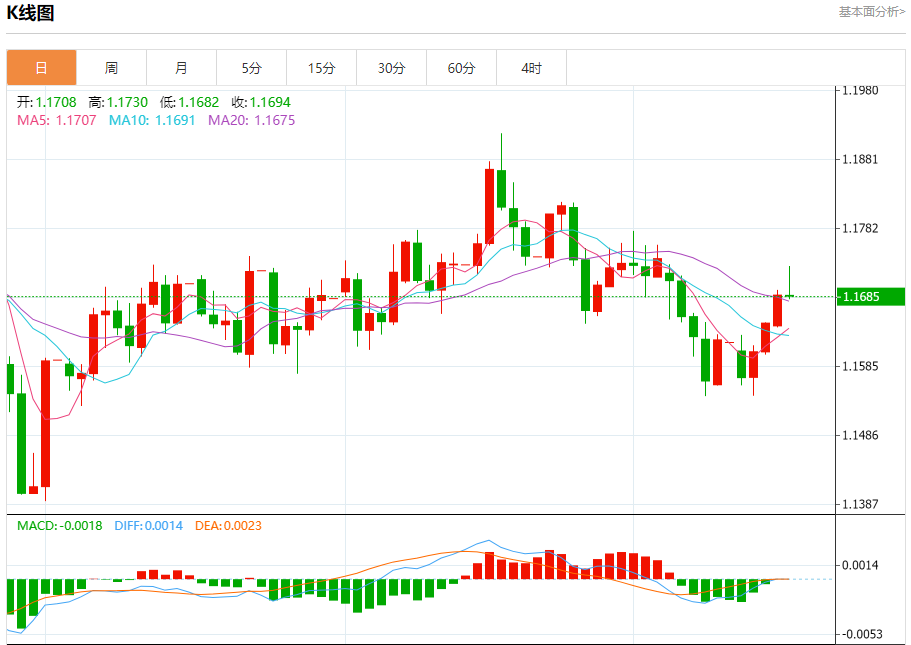 今日周五,截止目前欧元兑美元报1.1686,下跌0.01%。 欧元基本面行情分析 欧洲央行管理委员会成员Joachiagl表示,他对当前的货币政策设定感到满意,除非新增数据显示前景发生变化,否则没有理由作出调整。 这位德国央行行长周四表示,他“相当有信心”欧洲央行已接近2%的