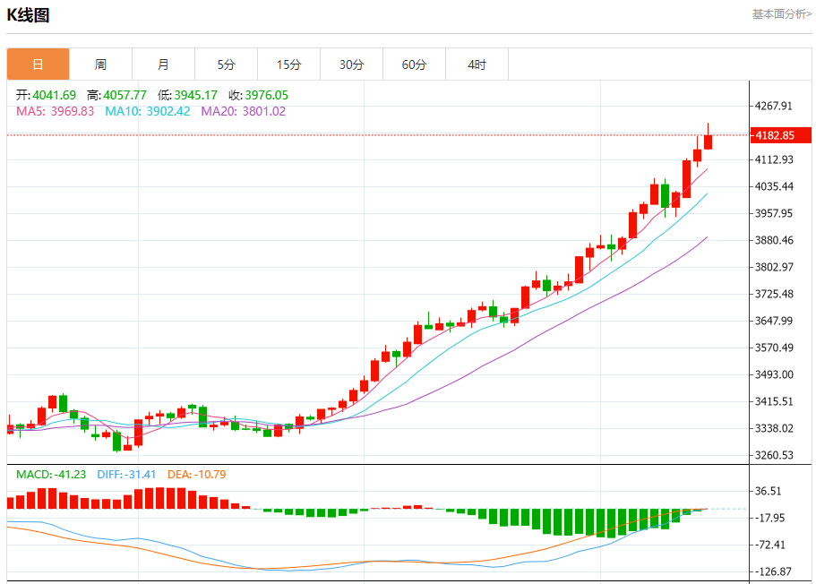 周三盘中,现货黄金报4188.39,涨幅1.12%。 今日分析:在4150.00之上,看涨,目标价位为4235.00,然后为4260.00。 技术点评:RI技术指标缺乏下降动能 支撑位:4150.004120.004090.00 阻力位:4280.004260.004235.00 (亚汇网编辑:冰凡)