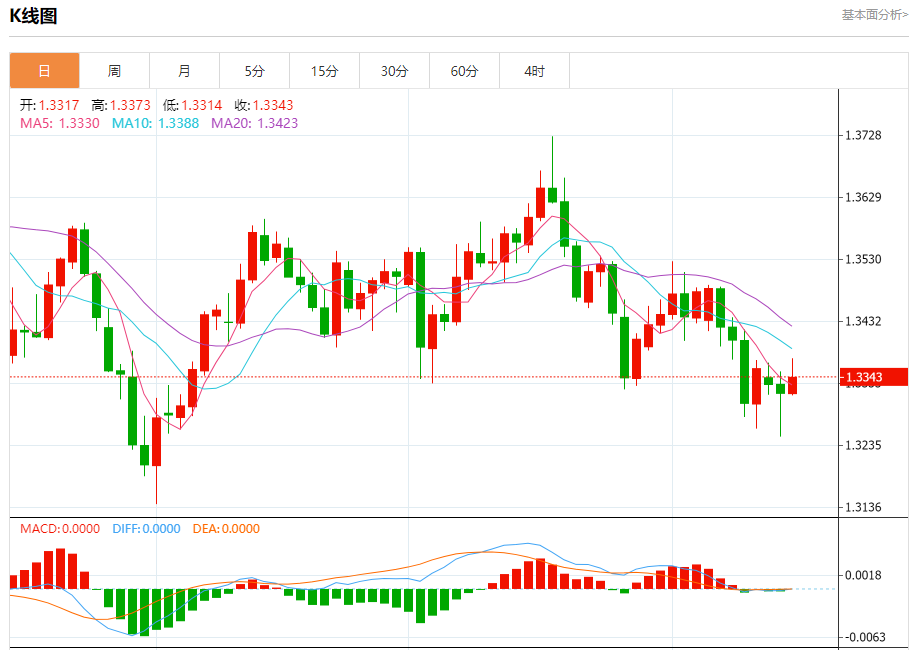 周三盘中,英镑/美元报1.3340,涨幅0.16%。 今日分析:在1.3325之上,看涨,目标价位为1.3375,然后为1.3410。 技术点评:RI技术指标看涨,有进一步上升空间。 支撑位:1.33251.33001.3275 阻力位:1.34351.34101.3375 (亚汇网编辑:冰凡)