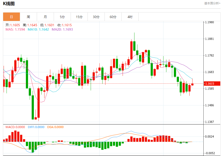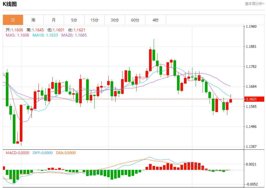 周三晚间,美元指数现报98.892,跌幅0.16%,现对美元兑欧元、英镑、日元主要货币对分析表述如下: 欧元/美元 汇价高见1.1645,低见1.1601。上一交易日,汇价收于1.1606。 基本面:德国商业银行指出,对未来48小时的法国国债而言,最理想的情景将是出现预算规模缩减及养老金改