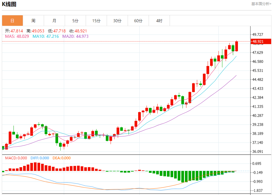 周三盘中,现货白银报48.920,涨幅2.34%。 今日分析:在47.80之上,看涨,目标价位为48.75,然后为49.15。 技术点评:RI技术指标呈现继续上升趋势。 支撑位:47.8047.3047.00 阻力位:49.6549.1548.75 (亚汇网编辑:冰凡)