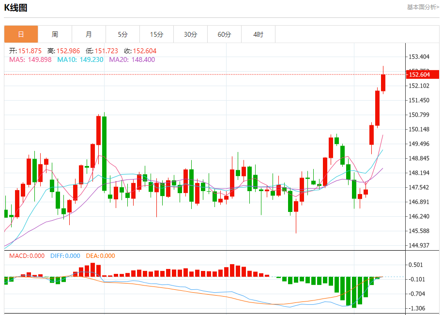 周三盘中,美元/日元报152.477,涨幅0.39%。 今日分析:在151.70之上,看涨,目标价位为153.00,然后为153.30。 技术点评:RI技术指标看涨,有进一步向上趋势。 支撑位:151.70151.40151.00 阻力位:154.00153.30153.00 (亚汇网编辑:冰凡)