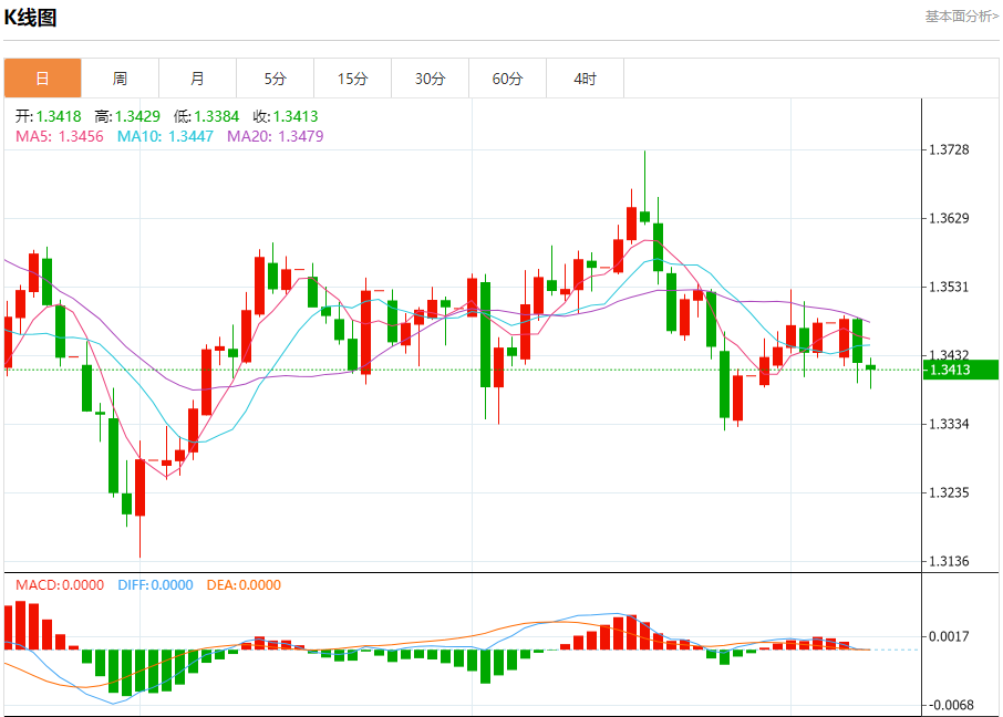 周三盘中,英镑/美元报1.3415,跌幅0.06%。 今日分析:在1.3430之下,看跌,目标价位为1.3370,然后为1.3340。 技术点评:RI技术指标上,呈现新的下降趋势。 支撑位:1.33701.33401.3320 阻力位:1.34901.34601.3430 (亚汇网编辑:冰凡)