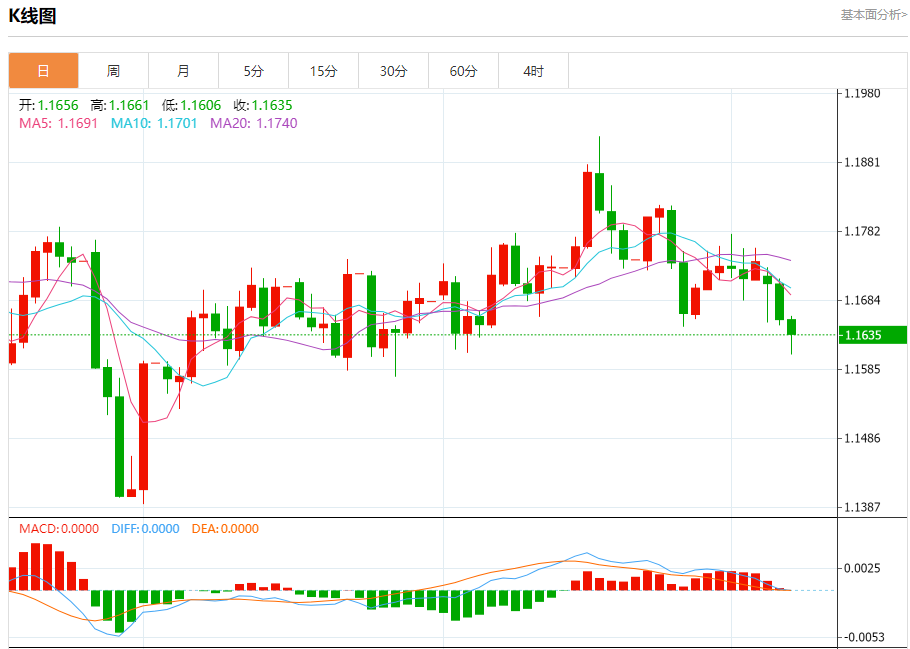 周三盘中,欧元/美元报1.1634,跌幅0.19%。 今日分析:在1.1660之下,看跌,目标价位为1.1605,然后为1.1575。 技术点评:RI技术指标看跌,有进一步下降空间。 支撑位:1.16051.15751.1550 阻力位:1.17201.16901.1660 (亚汇网编辑:冰凡)
