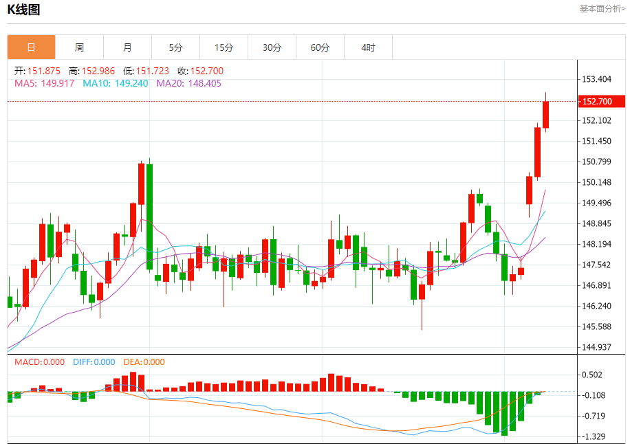 今日周三,截止目前美元兑日元报152.702,上涨0.53%。 日元基本面行情分析 前日本央行理事门间一夫(Kazuooa)周三表示,日元近期的大幅下跌可能促使日本央行最快在本月加息。 自财政和货币政策派人士高市早苗(aaTakaichi)上周六在自民党党首竞选中获胜以来,日元已