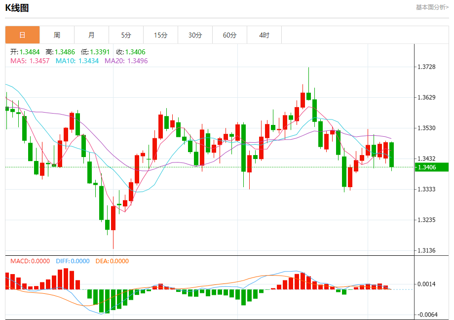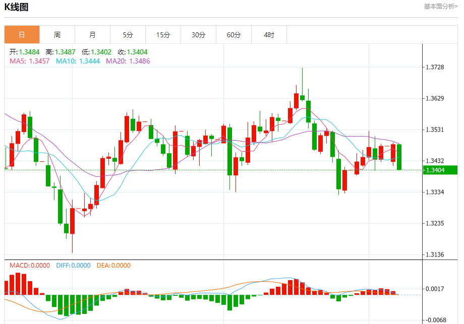 周二盘中,英镑/美元报1.3415,跌幅0.51%。 今日分析:在1.3465之下,看跌,目标价位为1.3415,然后为1.3395。 技术点评:RI技术指标上,呈现新的下降趋势。 支撑位:1.34151.33951.3370 阻力位:1.35001.34851.3465 (亚汇网编辑:冰凡)