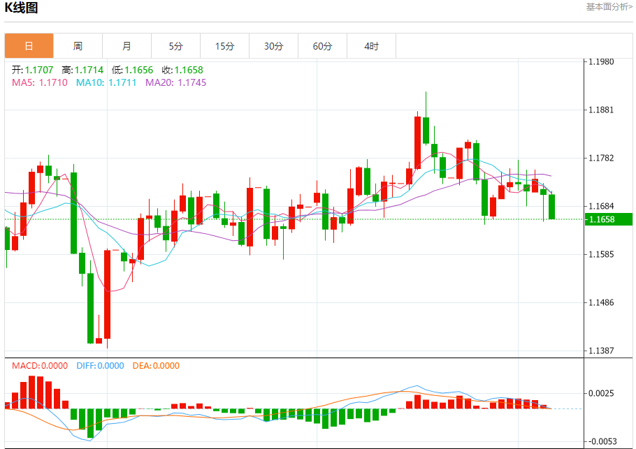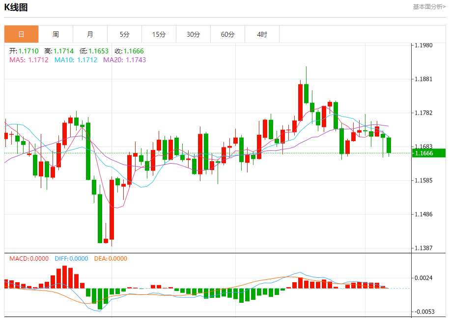 周二盘中,欧元/美元报1.1668,跌幅0.36%。 今日分析:在1.1695之下,看跌,目标价位为1.1650,然后为1.1625。 技术点评:即使我们不能排除持续技术反弹的可能性,其时间长度上,应该是有限的。 支撑位:1.16501.16251.1605 阻力位:1.17301.17151.1695