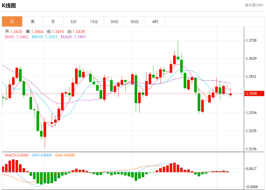 周一盘中,英镑/美元报1.3437,跌幅0.30%。 今日分析:在1.3465之下,看跌,目标价位为1.3400,然后为1.3385。 技术点评:只要依旧存在1.3465阻力位,价格波动存在看跌的趋势。 支撑位:1.34001.33851.3370 阻力位:1.35001.34851.3465 (亚汇网编